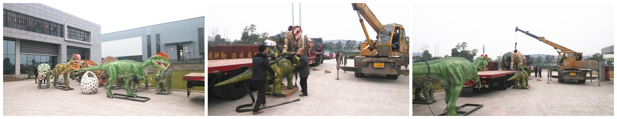 公司工程制作中心和藝思特恐龍彩燈科技有限公司,于元月18日-25日順利完成發往韓國、山東、成都的大型仿真恐龍、彩燈裝箱(車)工作。此次發往展出地 的機械仿真恐龍,共計9口箱(車),由于數量多,形體不規則,尺寸超長(最大體量的恐龍身長達16.2米、身高達9 米),為入箱作業帶來難度。加之氣溫驟降,天空飄起了密集的雪花,紛擾了現場作業視線,公司員工不畏嚴寒,配合物流公司箱(車)管員穿梭在場地上進行搬運和裝載,終于在元月25日下午圓滿完成發運貨物的裝箱(車)工作。