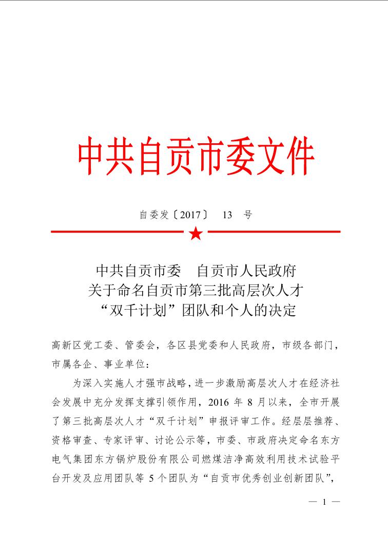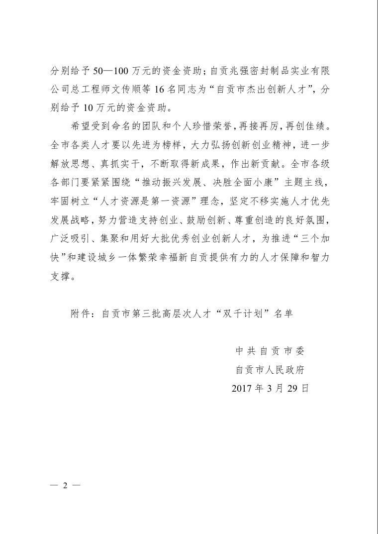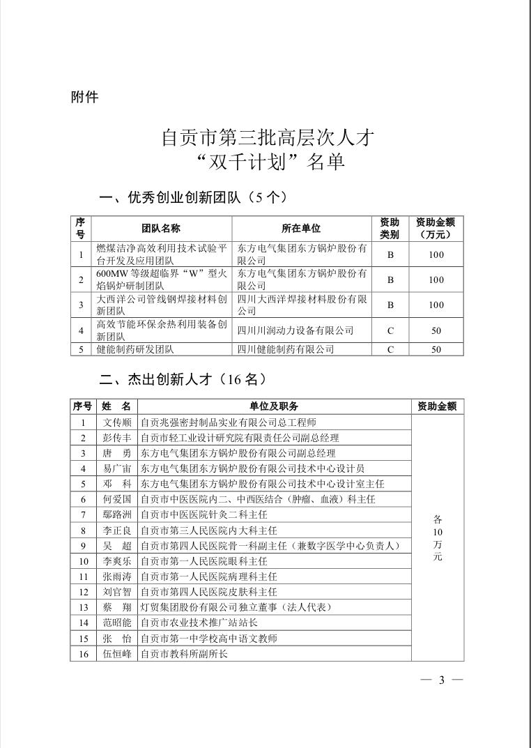 本次自貢市高層次人才“千人計劃-杰出創新人才”命名表彰會將于4月舉行。