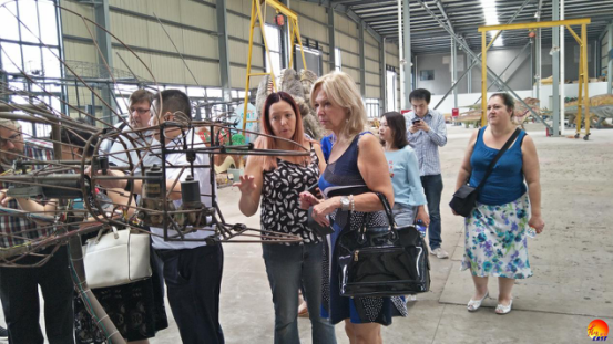 訪問團一行在集團公司執行總裁陶建軍的陪同下走進東方彩燈出口基地,參觀集團公司美國、秘魯燈展制作現場,了解仿真恐龍和彩燈制作流程及工藝。訪問團與公司有關人員就城市亮化工程、冬季節日燈展旅游等展開了積極地交流和討論。訪問團成員對東方彩燈給予了高度評價,并希望燈貿集團與瀑布市的合作突破市場層面,實現多元、多維合作。集團公司董事長劉婭表示燈貿集團將充分借助“2018中加旅游年”的政策機會窗口,搭上兩國文化交流的快車道,向加拿大民眾展示東方彩燈的艷麗繽紛、美輪美奐。