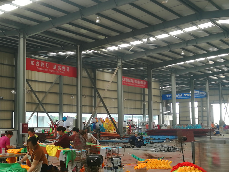 初夏寂靜的板倉工業(yè)園區(qū),東方彩燈出口生產(chǎn)基地呈現(xiàn)一派熱火朝天,繁忙的景象,燈貿(mào)集團(tuán)2018年“北境之光——溫尼伯中華彩燈嘉年華”燈組制作工作正緊鑼密鼓而又井然有序的進(jìn)行著。參加燈組制作的工人揮汗如雨:電焊、接線、切割、裱糊......焊花飛濺,綢緞翻舞,精美絕倫,栩栩如生的彩燈浸印著彩燈藝人的汗水,展示了彩燈工匠的技藝。