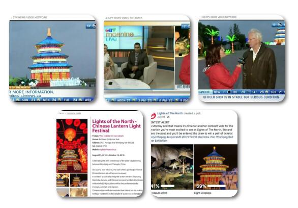 “北境之光——溫尼伯中華彩燈嘉年華”燈展以“幻光炫彩中加年”為主題,以中國形象、全球視野、中國故事、國際表達的理念和胸懷,在源遠流長的彩燈文化長河中擷取題材,設置《夢幻長廊》、《神秘東方》、《北境之光》、《奇幻世界》四大特色主題板塊,共展出60余組大、中型彩燈,用傳統、現代彩燈語言唱響民族華章,是中外文化元素的一次絢麗綻放和雄渾交響。