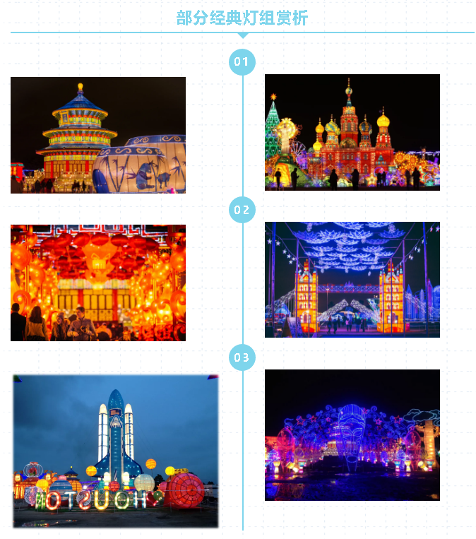 休斯敦“冬季夢幻彩燈嘉年華”分為“冬夢奇景”、“共同的世界”、“遠(yuǎn)古的呼喚”、“東方之燈”等七大主題板塊,展出燈組數(shù)近200余組。